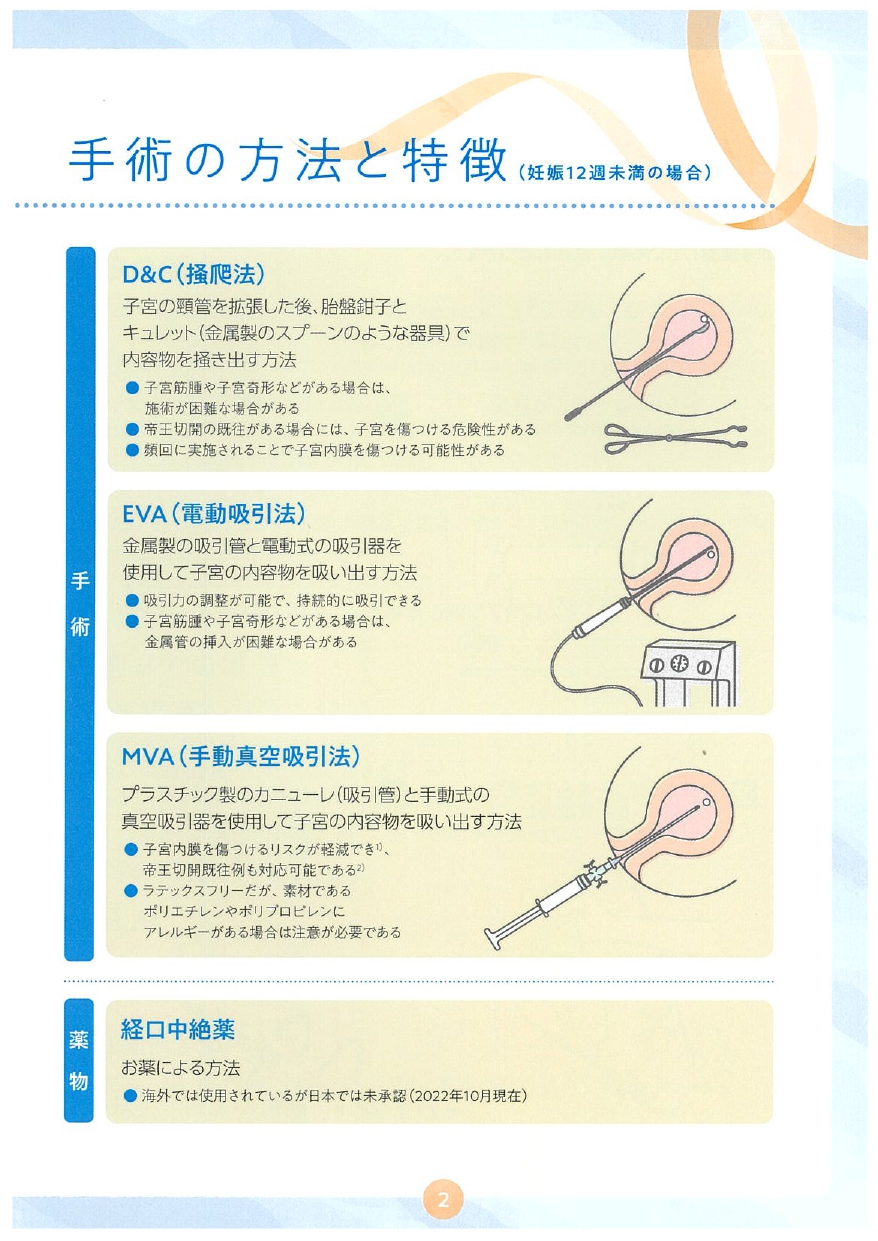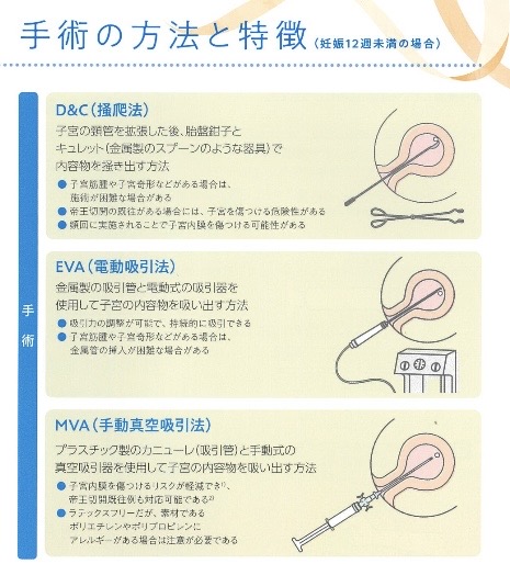 ・妊娠期間が長いと、搔爬法に比べて妊娠組織が残りやすいというリスクがあるため、手術を行う妊娠週数に制限があります